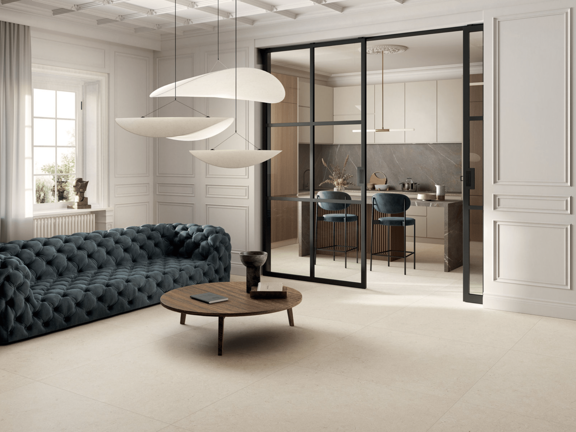 Ensuite, nous avons les carrelages à faible épaisseur ou encore appelés “carrelage slim”. Au début, ces carrelages poids plume répondaient à des contraintes techniques. Ne pas mettre de poids supplémentaires sur les dalles lors des rénovations de sol. Puis, par la multiplicité de couleurs et textures, ils se sont imposés comme un choix décoratif incontournable pour les architectes.
